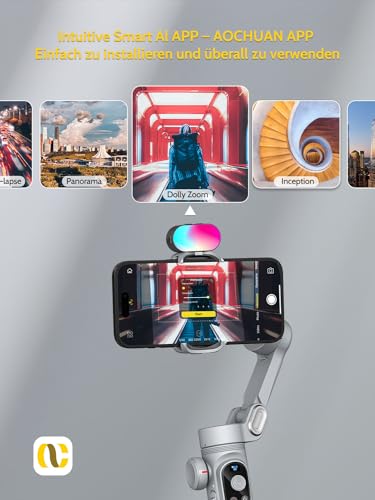 Specification: Gimbal Stabilizer for Smartphone,RGB Magnetic Refill Light Set,OLED Display LED Light Focus Wheel, Professional 3-axis stabilizer for Android &iPhone, AOCHUAN XPRO KIT Grey