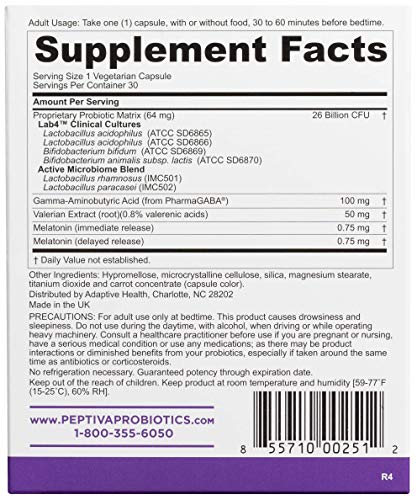 Specification: Peptiva 26 Billion CFU Probiotic and Sleep Support – Clinically Validated Multi-Strain Probiotic – Lactobacillus and Bifidobacterium, Melatonin – 30 Count