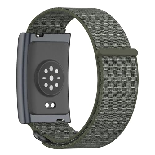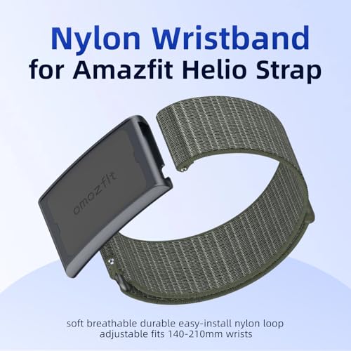Replacement band compatible with amazfit helio strap fitness tracker wristband. Elastic nylon loop with velcro closure clasp, breathable, durable and lightweight, one-size-fits-all adjustable strap suitable for men women with small/medium/large wrists, the quick-release replacement mechanism ensures effortless installation and removal, making it easy and comfort for daily, work or workout active lifestyles.